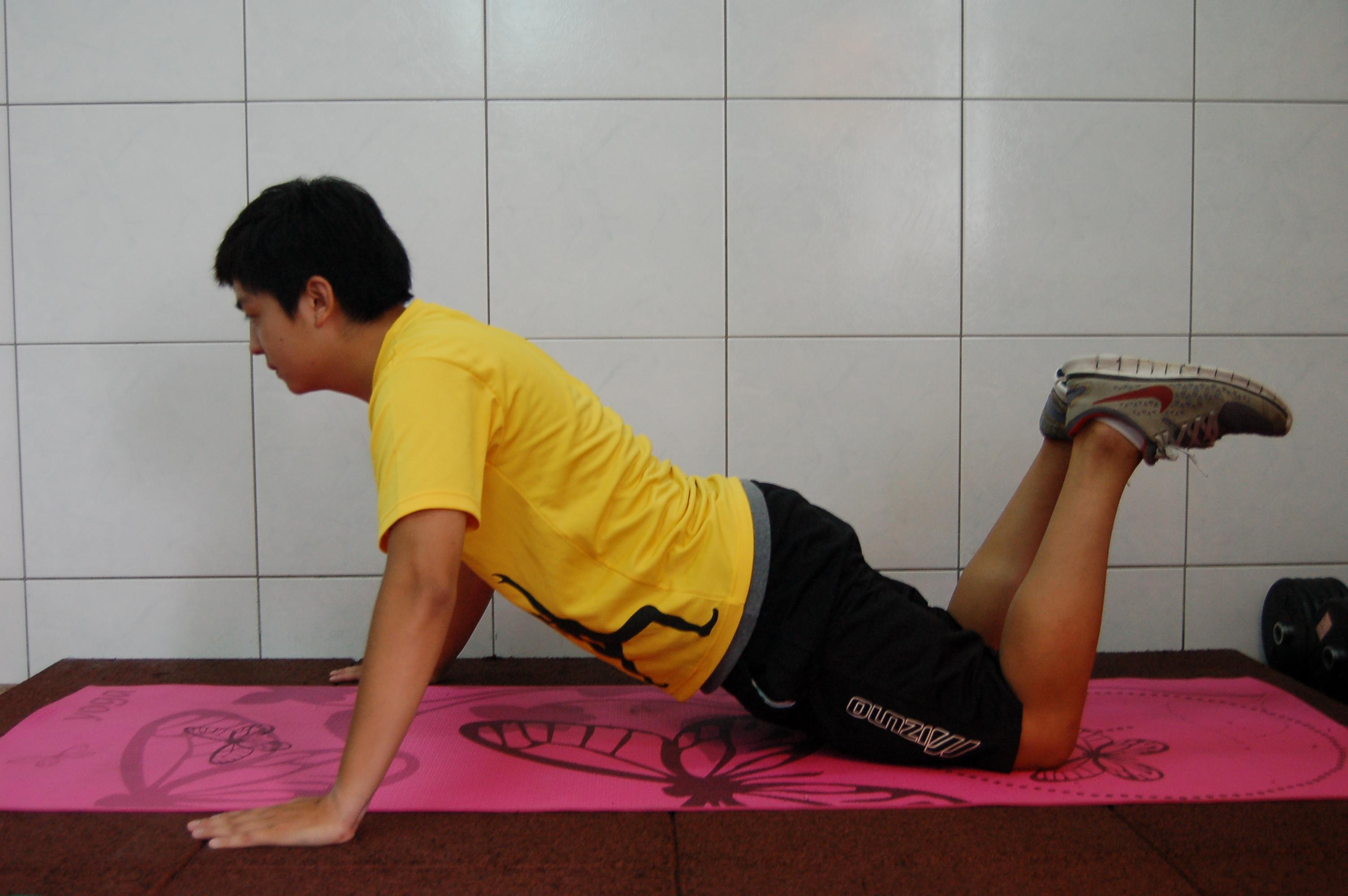 1. 手掌與大腿下方支撐於地板,腹肌保持適當張力,維持下背良好曲線。
