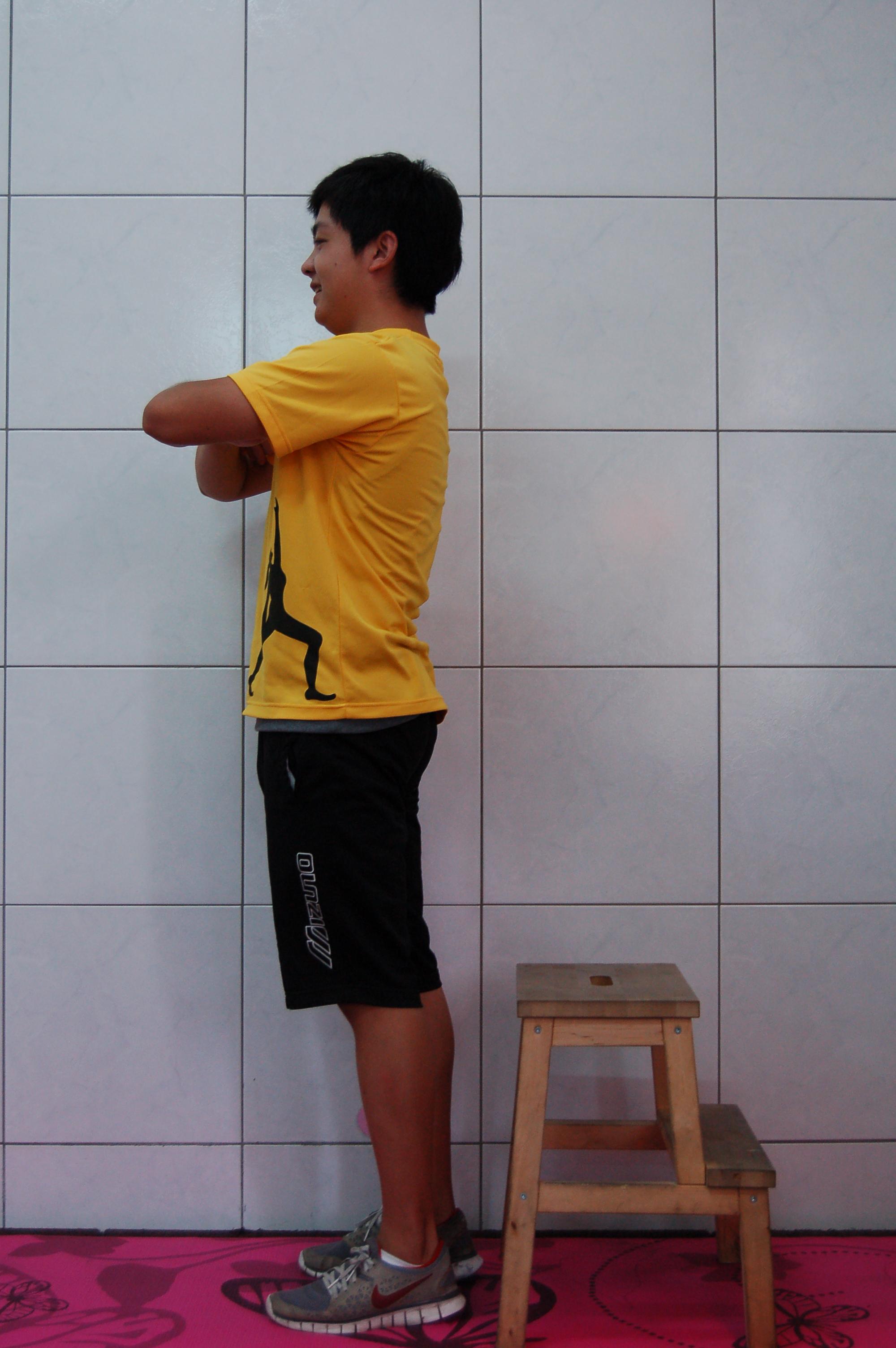 8. 過程中保持臉部朝前,以及雙腳腳跟貼於地板。