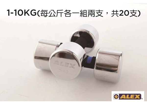 Alex - A01新型泡棉電鍍啞鈴-1-10kg (組)